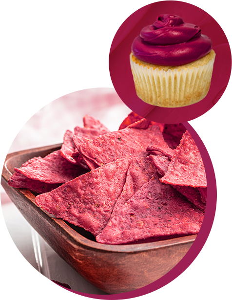 Para lograr estos tonos con colores naturales existen retos de aplicación, una de las fuentes de color que se utilizan; son los colores a base de betabel sin embargo, estos colores no son estables a procesos de horneado, y para solucionar este reto, en Sensient tenemos un portafolio de soluciones resistentes a procesos de horneado, llamado Uberbeet donde podemos lograr tonos rojos y rosas en este tipo de productos.